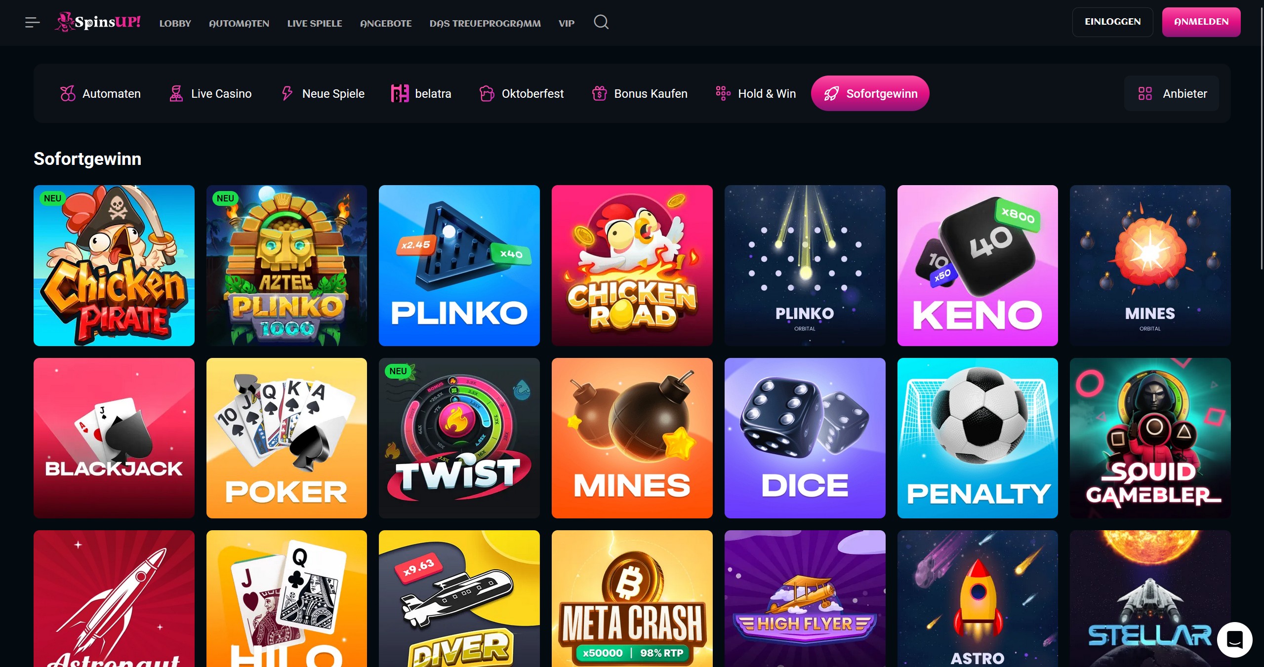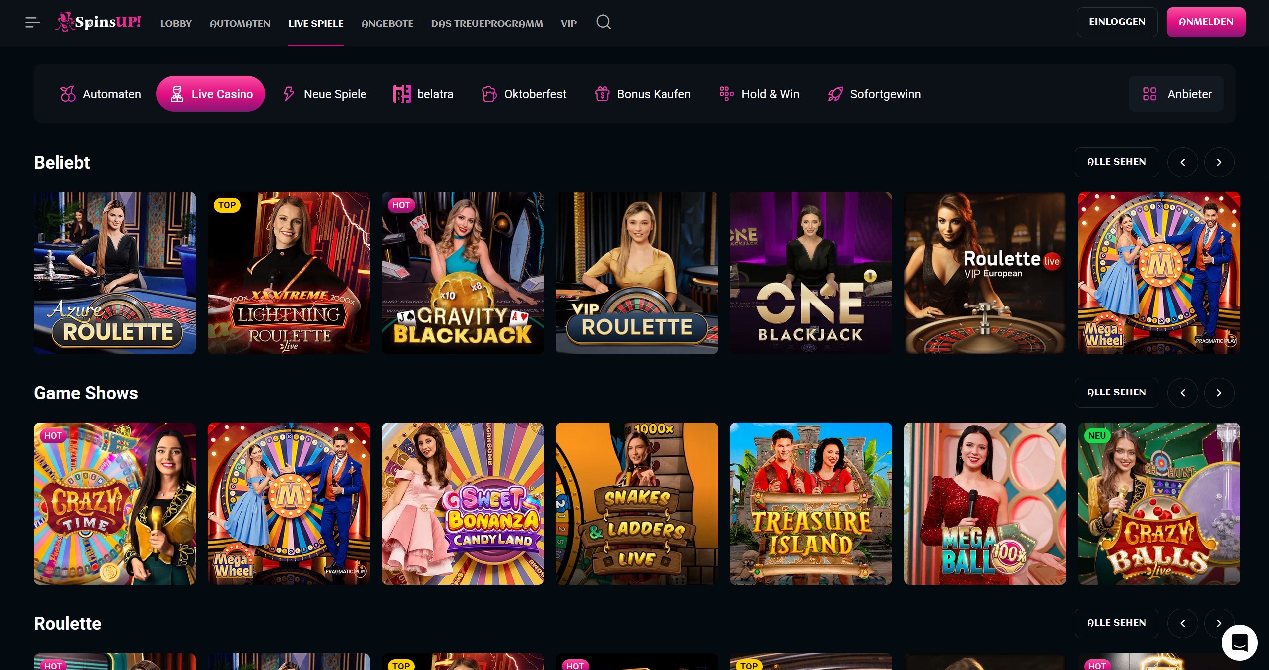 SpinsUP Casino Startseite