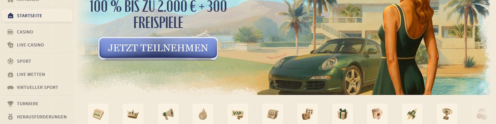 BonusWillkommensbonus bis 2000 € + 300 Freispiele